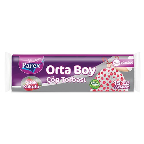 PREMIUM BÜZGÜLÜ ÇÖP TORBASI ÇİLEK KOKULU ORTA BOY 15'Lİ