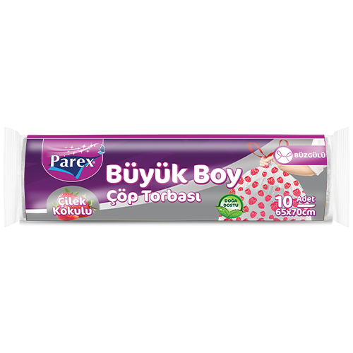 PREMIUM BÜZGÜLÜ ÇÖP TORBASI ÇİLEK KOKULU BÜYÜK BOY 10'LU