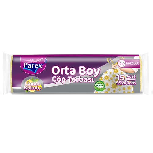 PREMIUM BÜZGÜLÜ ÇÖP TORBASI LİMON KOKULU ORTA BOY 15'Lİ