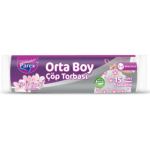 PREMIUM BÜZGÜLÜ ÇÖP TORBASI KİRAZ ÇİÇEĞİ KOKULU ORTA BOY 15'Lİ