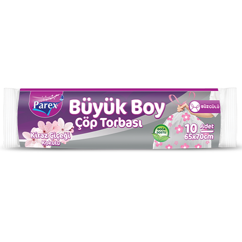 PREMIUM BÜZGÜLÜ ÇÖP TORBASI KİRAZ ÇİÇEĞİ KOKULU BÜYÜK BOY 10'LU