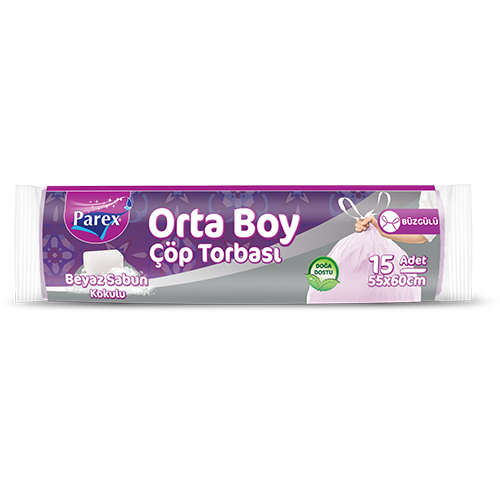 BÜZGÜLÜ ÇÖP TORBASI BEYAZ SABUN KOKULU ORTA BOY 15'Lİ