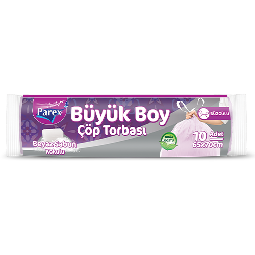 BÜZGÜLÜ ÇÖP TORBASI BEYAZ SABUN KOKULU BÜYÜK BOY 10’LU